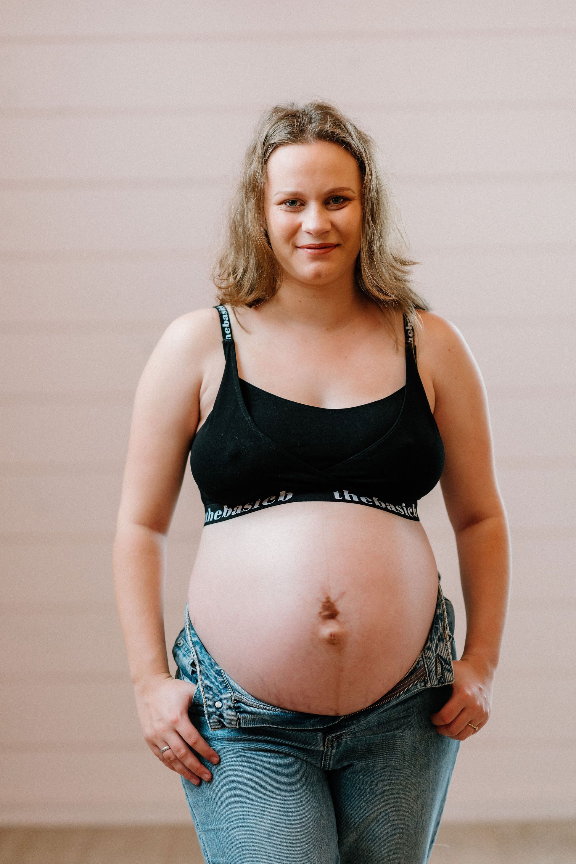 Thebasicb staple maternity bra is a multi-functional option for expecting or new mothers who want the functionality of a maternity bra and a nursing bra in a single product. Its simple design uses innovative pull-away cups that allows for easy and discrete feeding on-the-go, without having to deal with difficult clips. The pull-away cups can also conveniently hold your electric breast pump for hands-free pumping.